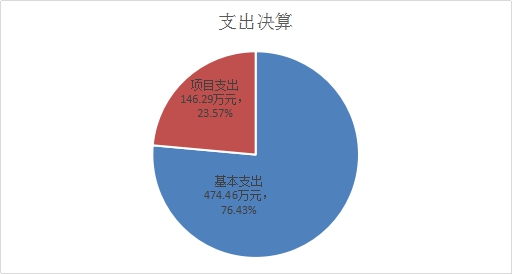 部门财政资金支出情况:2019年支出620.75万元,其中:基本支出474.46万元,占76.43%;项目支出146.29万元,占23.57%。